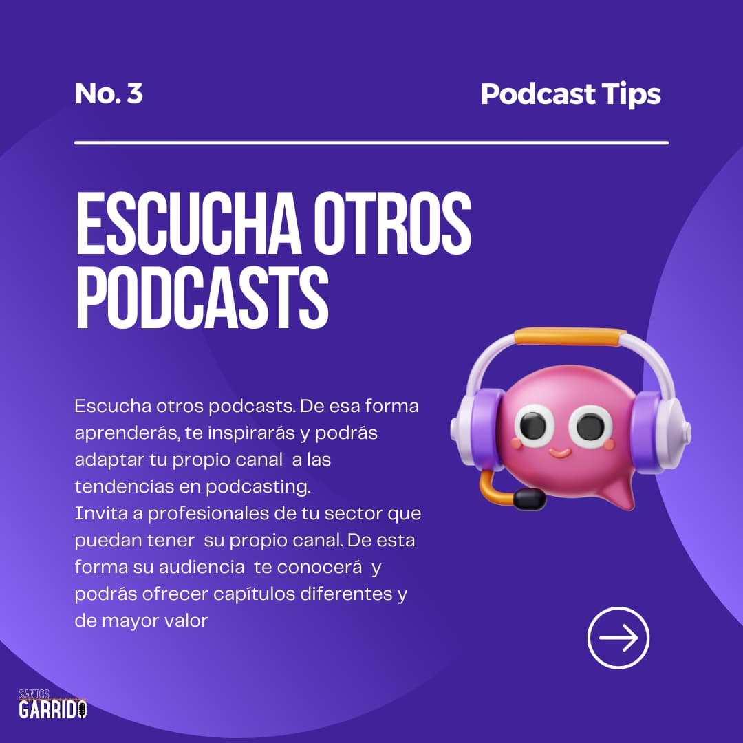 Escucha otros podcasts. De esa forma aprenderás, te inspirarás y podrás adaptar tu propio canal a las tendencias en podcasting.